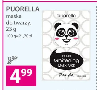 Cena produktu różni się w zależności od wybranego sklepu. Niestety nie posiadamy danych o aktualnych promocjach, jednak wśród archiwalnych ofert Maska do twarzy nawilżająca - panda PUORELLA kosztuje od 4,99 zł.