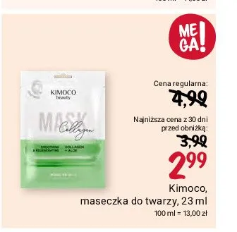 Cena produktu różni się w zależności od wybranego sklepu. Niestety nie posiadamy danych o aktualnych promocjach, jednak wśród archiwalnych ofert Maska do twarzy nawilżająca z kompleksem z alg Kimoco beauty kosztuje od 2,99 zł.