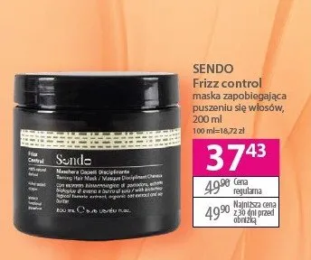 Cena produktu r贸偶ni si臋 w zale偶no艣ci od wybranego sklepu. Niestety nie posiadamy danych o aktualnych promocjach, jednak w艣r贸d archiwalnych ofert Maska do w艂os贸w frizz control SENDO kosztuje od 37,43 z艂.