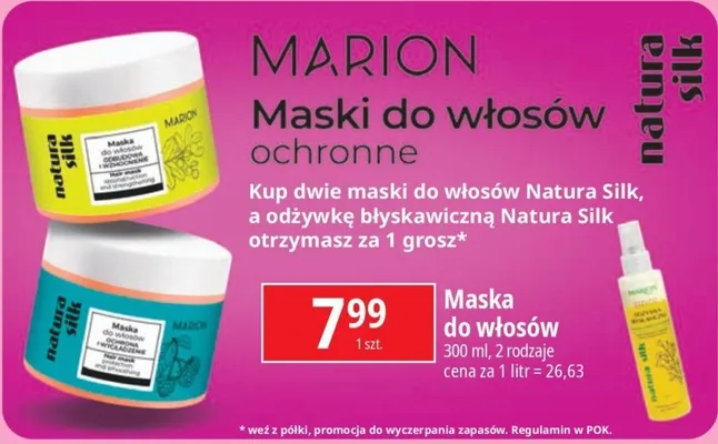 Przegl膮daj podobne oferty promocyjne do Maska do w艂os贸w ochrona i wyg艂adzenie Marion natura silk!