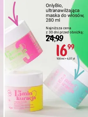 Cena produktu różni się w zależności od wybranego sklepu. Niestety nie posiadamy danych o aktualnych promocjach, jednak wśród archiwalnych ofert Maska do włosów ultranawilżająca Onlybio kosztuje od 16,99 zł.