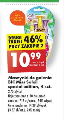 Cena produktu r贸偶ni si臋 w zale偶no艣ci od wybranego sklepu. Niestety nie posiadamy danych o aktualnych promocjach, jednak w艣r贸d archiwalnych ofert Maszynka do golenia beauty kit Bic miss soleil kosztuje od 10,99 z艂.