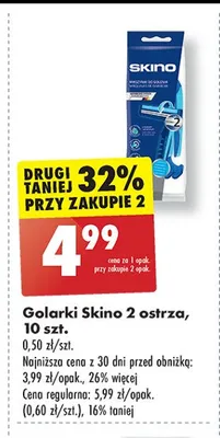 Cena produktu r贸偶ni si臋 w zale偶no艣ci od wybranego sklepu. Niestety nie posiadamy danych o aktualnych promocjach, jednak w艣r贸d archiwalnych ofert Maszynka do golenia Skino only for men kosztuje od 4,99 z艂.