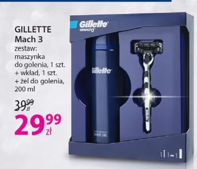 Cena produktu różni się w zależności od wybranego sklepu. Niestety nie posiadamy danych o aktualnych promocjach, jednak wśród archiwalnych ofert Maszynka do golenia + wkład + żel do golenia Gillette mach3 kosztuje od 29,99 zł.