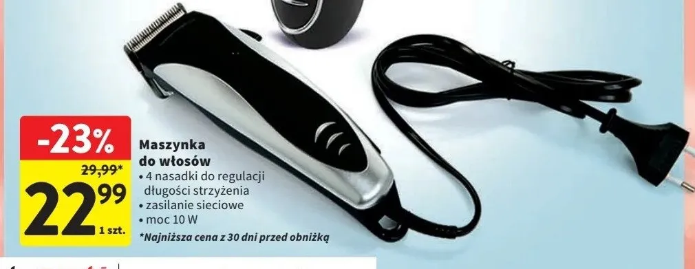Zastanawiasz si臋, gdzie kupi膰 i ile kosztuje produkt Maszynka do w艂os贸w? Regularnie sprawdzamy, czy jest promocja na ten produkt w Biedronka, Lidl, Kaufland, Auchan, Netto, Makro i innych sklepach. Aktualnie nie posiadamy ofert promocyjnych na ten produkt.