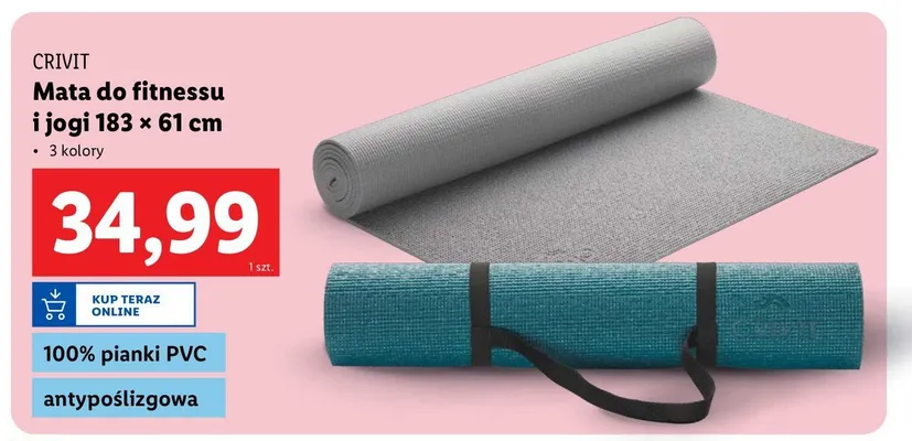 Mata do fitnessu i jogi 183 x 61 cm Crivit promocje w sklepach - znajd藕 ofert臋 dla siebie!
