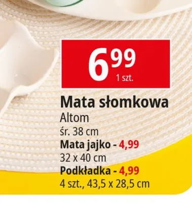 Cena produktu r贸偶ni si臋 w zale偶no艣ci od wybranego sklepu. Niestety nie posiadamy danych o aktualnych promocjach, jednak w艣r贸d archiwalnych ofert Mata jajko 32 x 40 cm Altom kosztuje od 4,99 z艂.