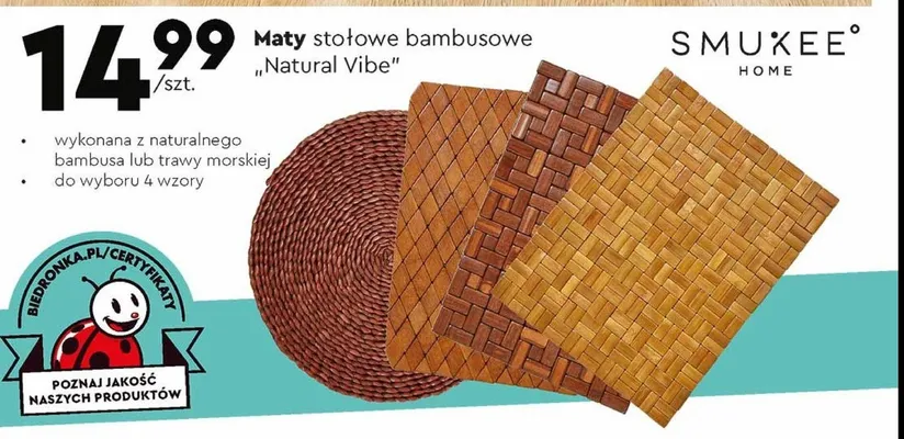 Przegl膮daj podobne oferty promocyjne do Mata sto艂owa z naturalnego bambusa Smukee home!