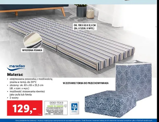 Gdzie mo偶na tanio kupi膰 produkt Materac 190 x 65 x 8.5 cm Meradiso?