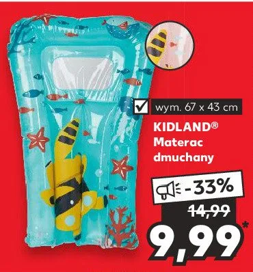 Cena produktu r贸偶ni si臋 w zale偶no艣ci od wybranego sklepu. Niestety nie posiadamy danych o aktualnych promocjach, jednak w艣r贸d archiwalnych ofert Materac dmuchany 67 x 43 cm Kidland kosztuje od 9,99 z艂.