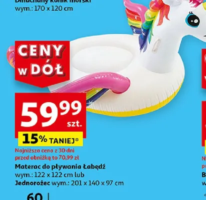Cena produktu r贸偶ni si臋 w zale偶no艣ci od wybranego sklepu. Niestety nie posiadamy danych o aktualnych promocjach, jednak w艣r贸d archiwalnych ofert Materac dmuchany jednoro偶ec kosztuje od 22,99 z艂 do 59,99 z艂.
