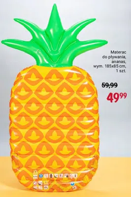 Cena produktu r贸偶ni si臋 w zale偶no艣ci od wybranego sklepu. Niestety nie posiadamy danych o aktualnych promocjach, jednak w艣r贸d archiwalnych ofert Materac do p艂ywania ananas 185 x 85 cm kosztuje od 49,99 z艂.
