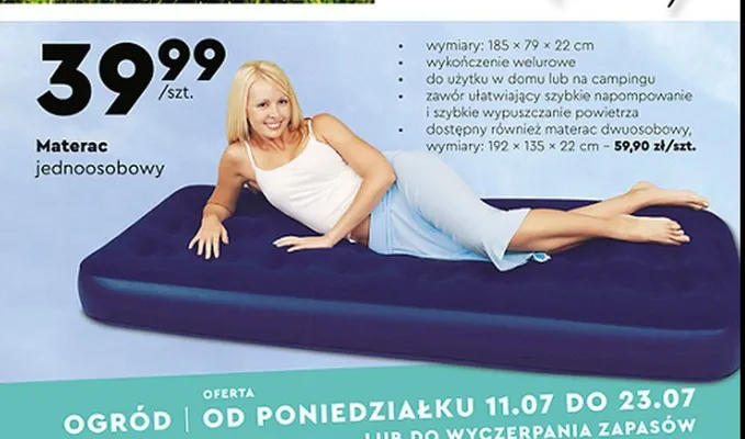 Zastanawiasz si臋, gdzie kupi膰 i ile kosztuje produkt Materac dwuosobowy 192 x 135 x 22 cm? Regularnie sprawdzamy, czy jest promocja na ten produkt w Biedronka, Lidl, Kaufland, Auchan, Netto, Makro i innych sklepach. Aktualnie nie posiadamy ofert promocyjnych na ten produkt.
