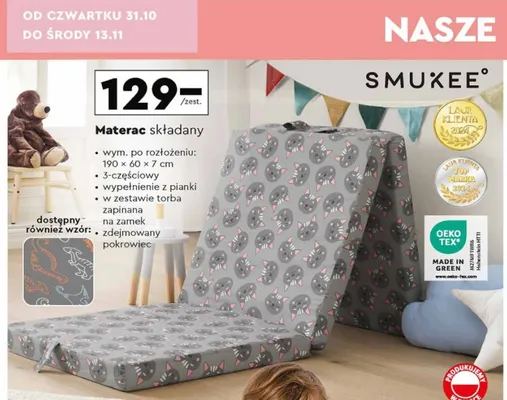 Cena produktu r贸偶ni si臋 w zale偶no艣ci od wybranego sklepu. Niestety nie posiadamy danych o aktualnych promocjach, jednak w艣r贸d archiwalnych ofert Materac sk艂adany 190 x 60 x 7 cm Smukee kosztuje od 129 z艂.