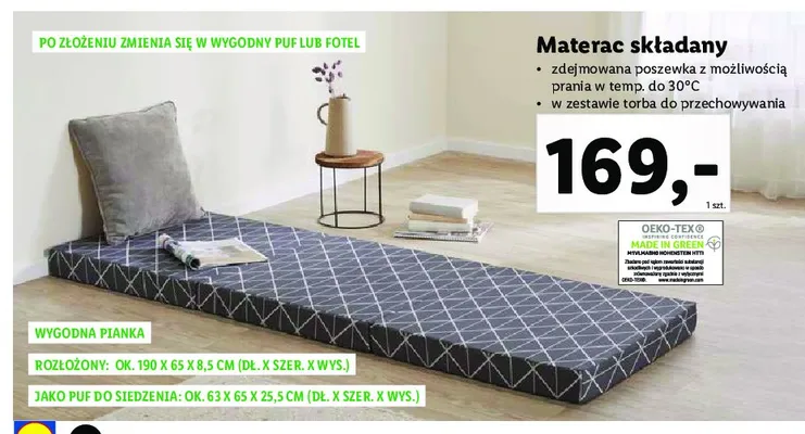 Ile kosztuje Materac sk艂adany 190 x 65 x 8.5 cm?