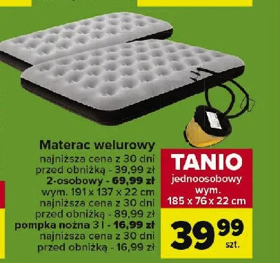 Przegl膮daj oferty promocyjne na produkt Materac welorowy z pompk膮 191 x 137 x 22 cm