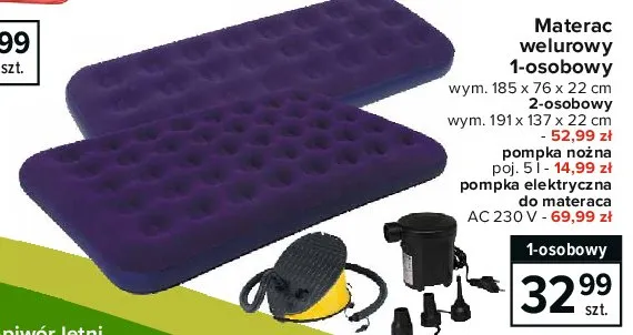 Ile kosztuje Materac welurowy 2 osobowy 191 x 137 x 22 cm?