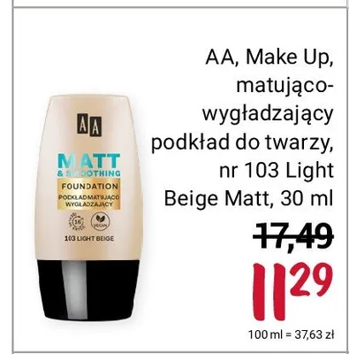 Ile kosztuje Matt 16h podkład matująco wygładzający 103 light beige Aa make up?