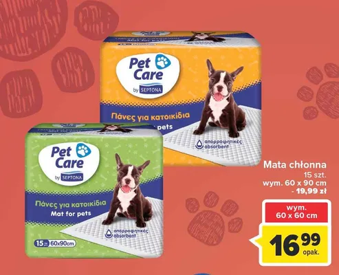 Cena produktu r贸偶ni si臋 w zale偶no艣ci od wybranego sklepu. Niestety nie posiadamy danych o aktualnych promocjach, jednak w艣r贸d archiwalnych ofert Maty ch艂onne PETCARE kosztuje od 16,99 z艂.