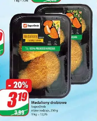 Gdzie mo偶na tanio kupi膰 produkt Medaliony drobiowe z broku艂ami i sosem o smaku serowym Superdrob?