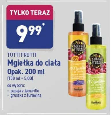 Cena produktu różni się w zależności od wybranego sklepu. Niestety nie posiadamy danych o aktualnych promocjach, jednak wśród archiwalnych ofert Mgiełka do ciała nawilżająca gruszka & żurawina Farmona tutti frutti kosztuje od 9,99 zł.