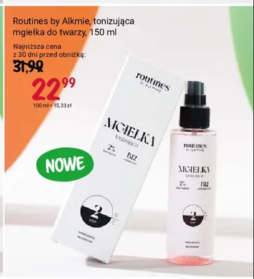 Cena produktu r贸偶ni si臋 w zale偶no艣ci od wybranego sklepu. Niestety nie posiadamy danych o aktualnych promocjach, jednak w艣r贸d archiwalnych ofert Mgie艂ka do twarzy tonizuj膮ca Routines kosztuje od 22,99 z艂.
