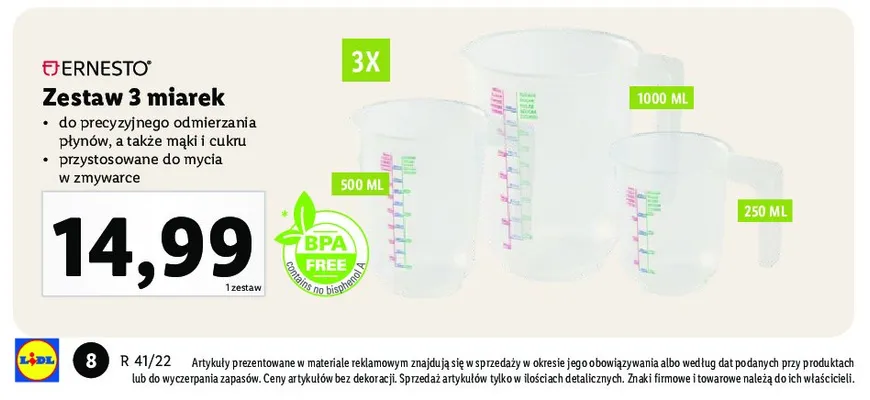 Przegl膮daj podobne oferty promocyjne do Miarki 250 ml + 500 ml + 1 l Ernesto!