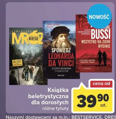 Cena produktu r贸偶ni si臋 w zale偶no艣ci od wybranego sklepu. Niestety nie posiadamy danych o aktualnych promocjach, jednak w艣r贸d archiwalnych ofert Michel bussi - wszystko na ziemi wyginie kosztuje od 39,9 z艂.