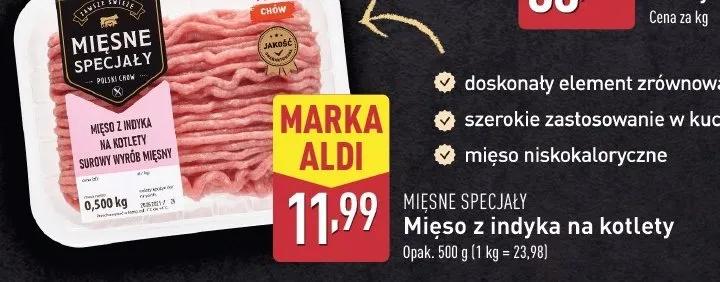 Ile kosztuje Mięso mielone z indyka Mięsne specjały zawsze świeże (aldi)?