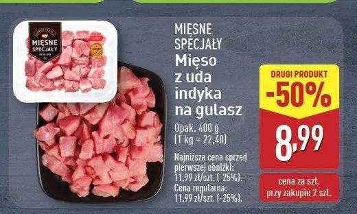 Ile kosztuje Mięso z uda indyka na gulasz Mięsne specjały zawsze świeże (aldi)?
