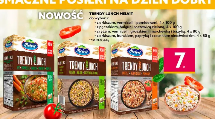 Przegl膮daj podobne oferty promocyjne do Mieszanka orkisz + buraki + papryka + czosnek nied偶wiedzi Melvit trendy lunch!