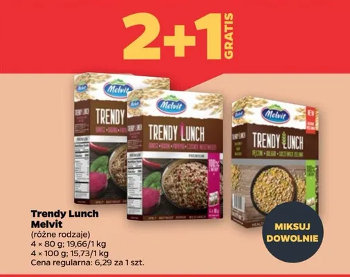 Przegl膮daj podobne oferty promocyjne do Mieszanka orkisz + buraki + papryka + czosnek nied藕wiedzi Melvit trendy lunch!