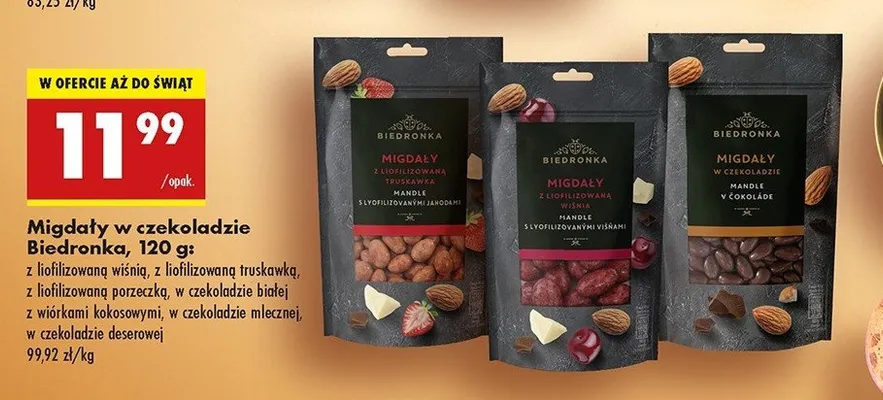Ile kosztuje Migdały w czekoladzie z liofilizowaną wiśnią Biedronka?