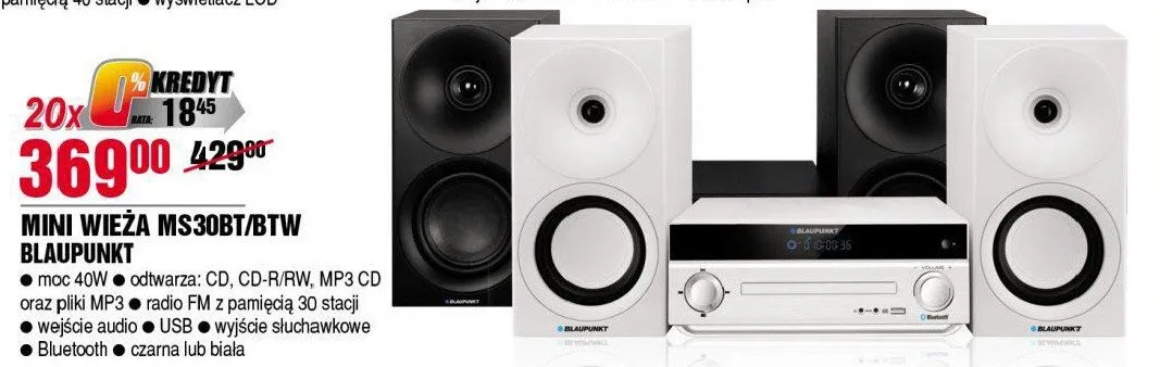 Cena produktu r贸偶ni si臋 w zale偶no艣ci od wybranego sklepu. Niestety nie posiadamy danych o aktualnych promocjach, jednak w艣r贸d archiwalnych ofert Mikrowie偶a ms30bt Blaupunkt kosztuje od 369 z艂.
