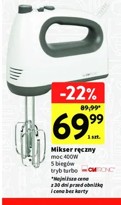 Cena produktu r贸偶ni si臋 w zale偶no艣ci od wybranego sklepu. Niestety nie posiadamy danych o aktualnych promocjach, jednak w艣r贸d archiwalnych ofert Mikser hm 3775 Clatronic kosztuje od 69,99 z艂.