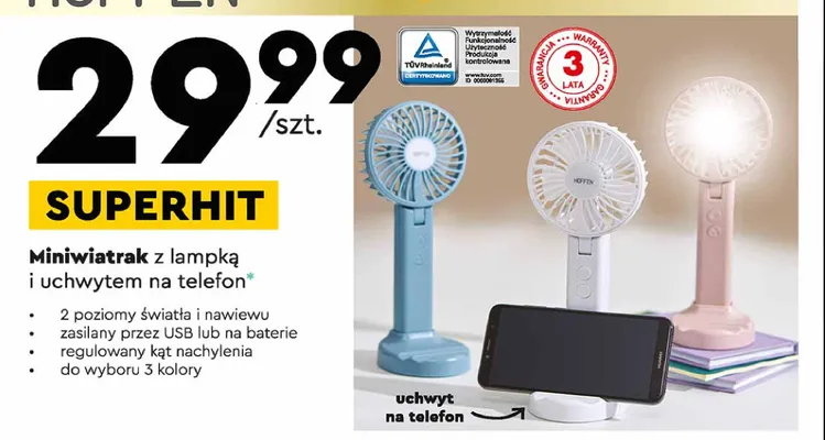 Ile kosztuje Miniwiatrak z lampk膮 i uchwytem na telefon Hoffen?