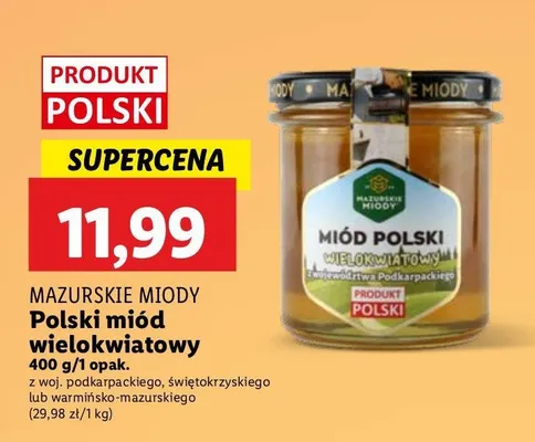 Zastanawiasz si臋, gdzie kupi膰 i ile kosztuje produkt Mi贸d wielokwiatowy z woj. warmi艅sko-mazurskiego Mazurskie miody Mazurskie miody1? Regularnie sprawdzamy, czy jest promocja na ten produkt w Biedronka, Lidl, Kaufland, Auchan, Netto, Makro i innych sklepach. Aktualnie nie posiadamy ofert promocyjnych na ten produkt.