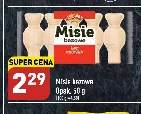 Cena produktu r贸偶ni si臋 w zale偶no艣ci od wybranego sklepu. Niestety nie posiadamy danych o aktualnych promocjach, jednak w艣r贸d archiwalnych ofert Misie bezowe Eurowafel kosztuje od 2,29 z艂.