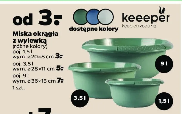 Cena produktu r贸偶ni si臋 w zale偶no艣ci od wybranego sklepu. Niestety nie posiadamy danych o aktualnych promocjach, jednak w艣r贸d archiwalnych ofert Miska okr膮g艂a z wylewk膮 9 l Keeeper kosztuje od 6 z艂 do 7,99 z艂.
