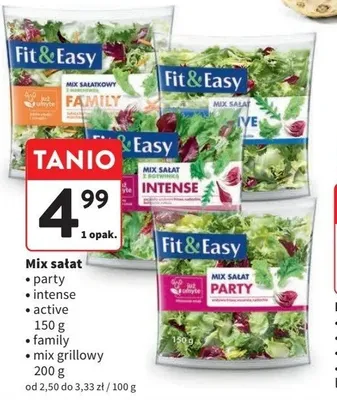 Cena produktu r贸偶ni si臋 w zale偶no艣ci od wybranego sklepu. Niestety nie posiadamy danych o aktualnych promocjach, jednak w艣r贸d archiwalnych ofert Mix grillowy z sa艂at膮 lodow膮 Fit & easy kosztuje od 4,49 z艂 do 4,99 z艂.
