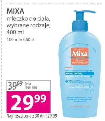 Ile kosztuje Mleczko do ciała hyalurogel intensywnie nawilżające Mixa ekspert skóry wrażliwej?