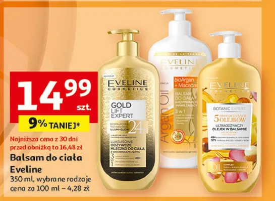 Cena produktu r贸偶ni si臋 w zale偶no艣ci od wybranego sklepu. Niestety nie posiadamy danych o aktualnych promocjach, jednak w艣r贸d archiwalnych ofert Mleczko do cia艂a z drobinkami z艂ota Eveline gold lift expert kosztuje od 12,99 z艂 do 16,99 z艂.