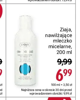 Cena produktu różni się w zależności od wybranego sklepu. Niestety nie posiadamy danych o aktualnych promocjach, jednak wśród archiwalnych ofert Mleczko micelarne nawilżające Ziaja de-makijaż kosztuje od 6,29 zł do 9,49 zł.