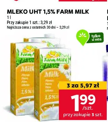 Przegl膮daj oferty promocyjne na produkt Mleko 1.5% Farm milk