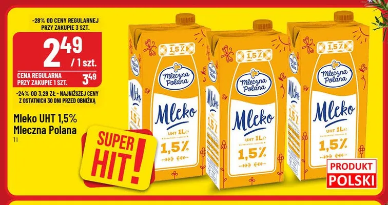 Przegl膮daj oferty promocyjne na produkt Mleko 1.5 % Mleczna polana