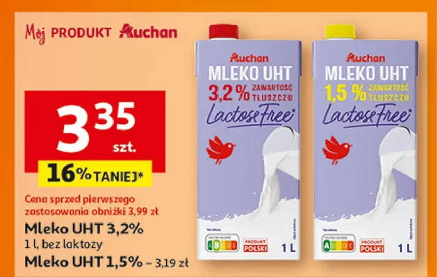 Ile kosztuje Mleko 2% bez laktozy Auchan r贸偶norodne (logo czerwone)?