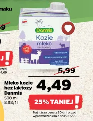 Przegl膮daj oferty promocyjne na produkt Mleko kozie bez laktozy Danmis