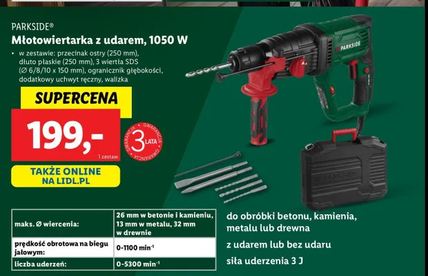 Ile kosztuje M艂otowiertarka z udarem 1050w Parkside?