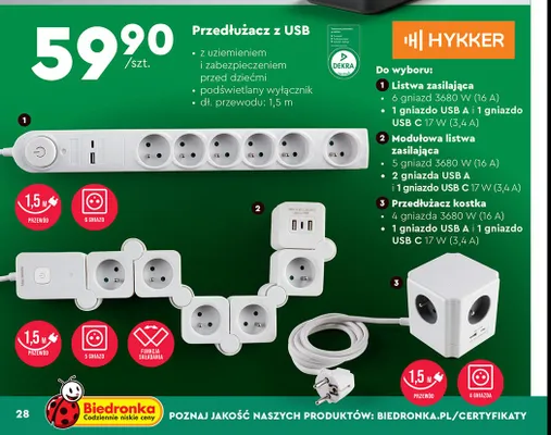 Gdzie mo偶na tanio kupi膰 produkt Modeluj膮ca listwa zasilaj膮ca 5 gniazd + 2 x usb a + usb c Hykker?
