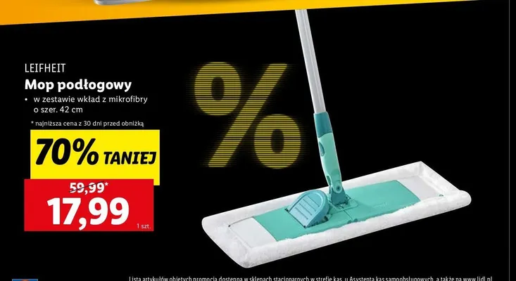 Zastanawiasz si臋, gdzie kupi膰 i ile kosztuje produkt Mop p艂aski Leifheit? Regularnie sprawdzamy, czy jest promocja na ten produkt w Biedronka, Lidl, Kaufland, Auchan, Netto, Makro i innych sklepach. Aktualnie nie posiadamy ofert promocyjnych na ten produkt.